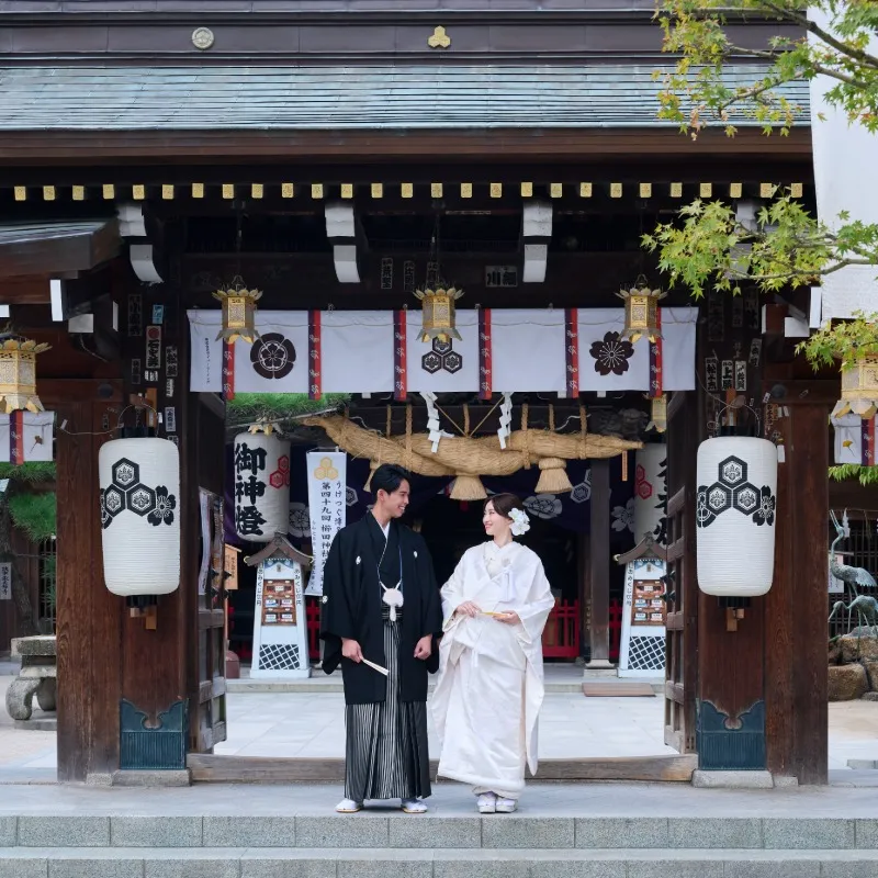 近隣の神社での神前式と披露宴が叶う! 櫛田神社のとなりだからフェア当日もご紹介可能です◎